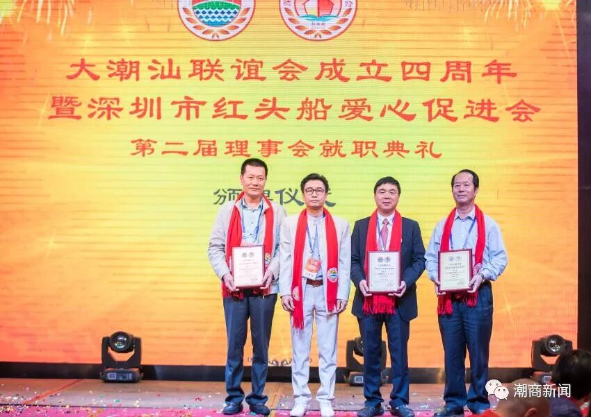两会自2014年成立以来,在本会领导班子和全体会员的共同努力下,自身建设得到全面加强,服务会员取得良好成效,推进合作实现创新发展,商协会,是一个平台,是一座桥梁,是一个合作交流的信息港,也是一个互帮互助的加油站。当前,社会经济发展进入新阶段,社团组织管理业出台了新规定,企业发展面临转型升级新压力,但是,深化改革的号角鼓舞人心,激动人心,风险和机遇并存,舞台和空间会更广阔,两会必将迎来新的历史发展机遇,取得更大的成绩!为进一步促进两会登上新台阶,增进会员之间联谊交流,激发会员改革创新热情,大潮汕联谊会成立四周年塈深圳市红头船爱心促进会进行以“大潮汕、大团结、大平台、大发展”为主题的第二届理事会换届就职庆典。