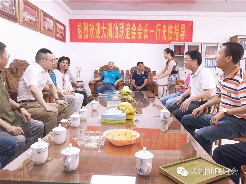 随后,大潮汕联谊会会陈炫昊简明阐述了大潮汕联谊会“开拓创新,抱团发展”的办会宗旨,并详细介绍了联谊会的基本情况及所做的活动、发展会员的情况,未来发展目标方向,关于教育与文化创意产业,农家庄餐饮行业等进行了交流。会长胡细弟,以自身多年的餐饮行业经验,给我会提出宝贵意见,并非常认可从事教育文化行业的可行性。在条件允许的情况下发挥潮商企业力量,引进资源,顺应当前形势,逐步发展壮大。充分发挥其以商引商优势,吸引更多的优秀企业来平发展。对此,会长陈炫昊表示此行收获很大,思路开阔不少,并希望有机会寻找合作机会,资源共享,互利共赢,共同发展。最后双方就教育文化交流、商会建设等内容上交换了意见,并表示将进一步加强交流合作,建立兄弟商会。